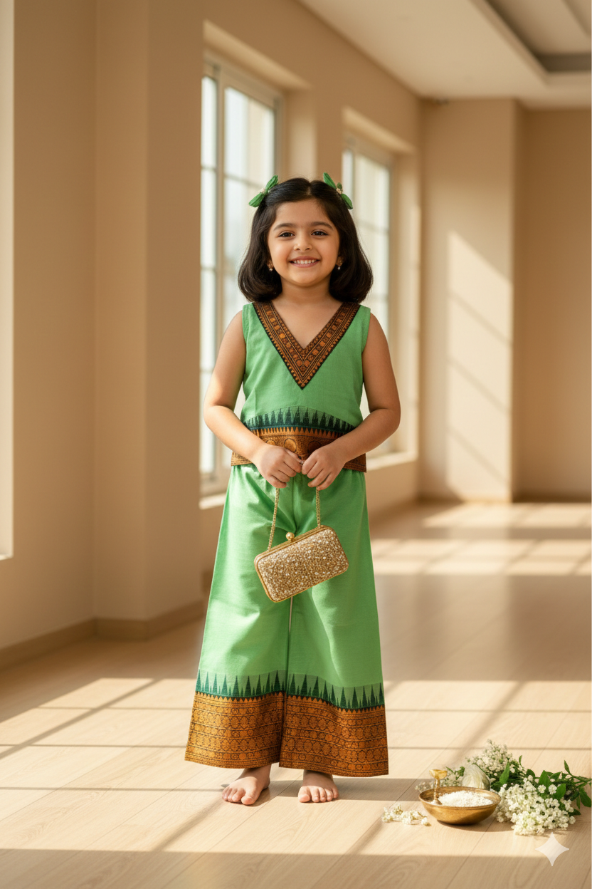 silk traditional dress for kids with zari border. Perfect for festivals, weddings, and special occasions.