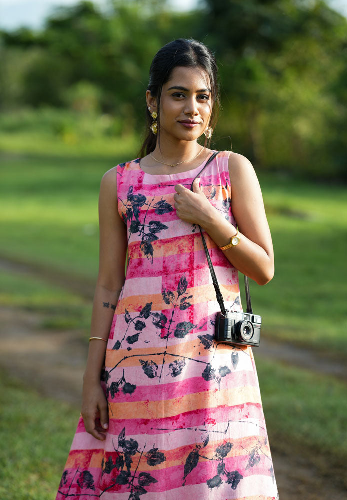 Make a bold yet breezy statement with this Pink Floral Muslin Co-ord Set, designed for vibrant style and all-day comfort. Tailored from soft, breathable muslin fabric, this sleeveless set includes a relaxed-fit top and matching straight-fit pants that move with ease.