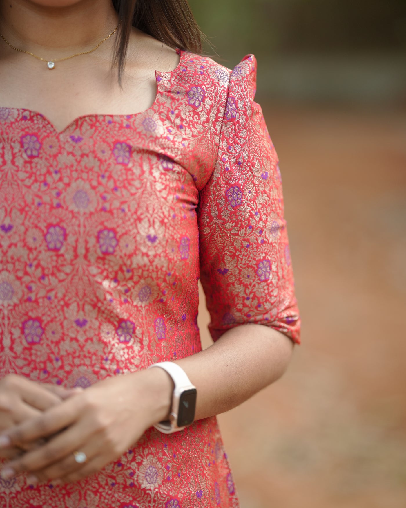 Graceful pink kurta set designed for festive and traditional occasions.Features subtle gold motifs for a refined ethnic look.