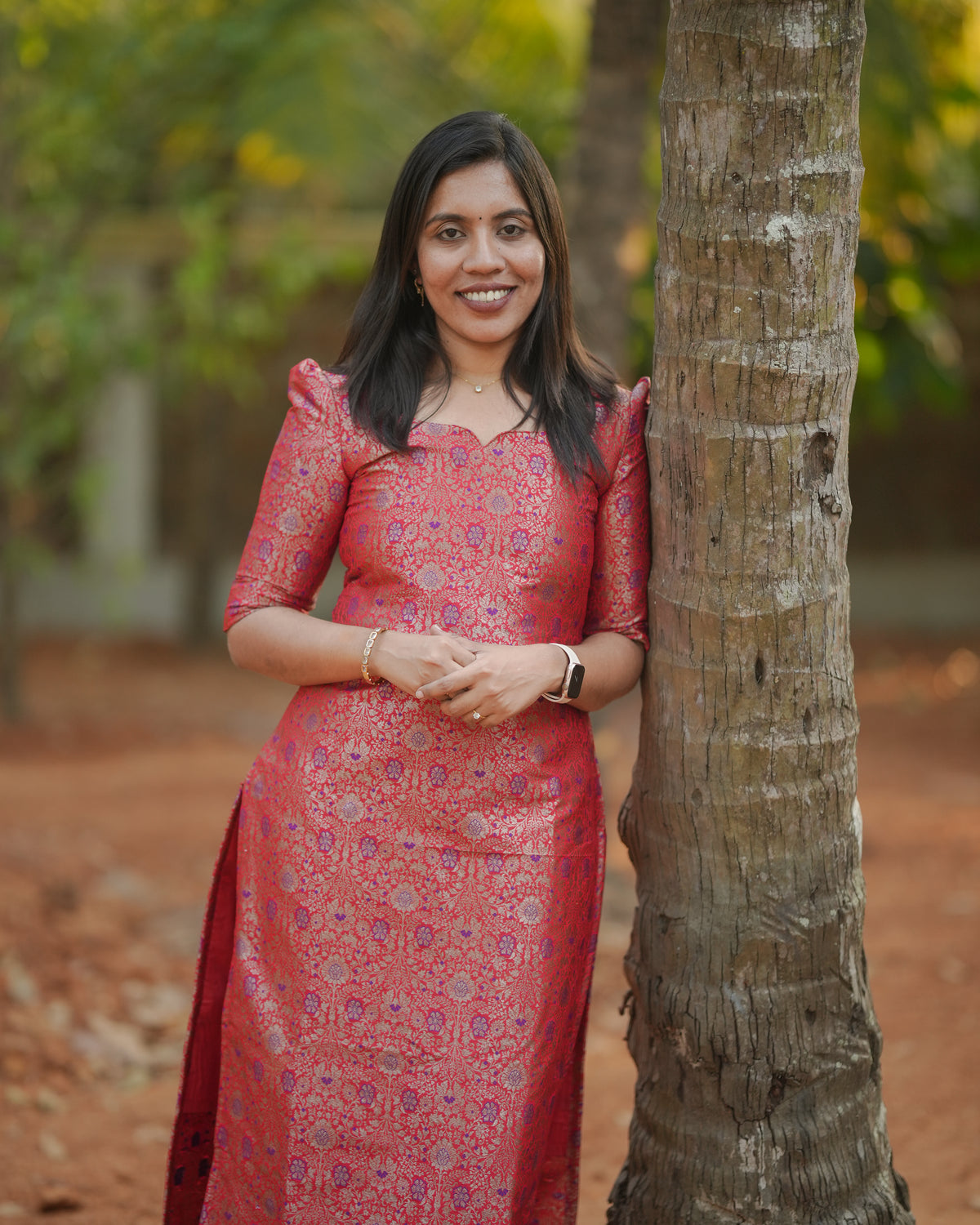 Inform when this item available Red Floral Printed Straight Kurti