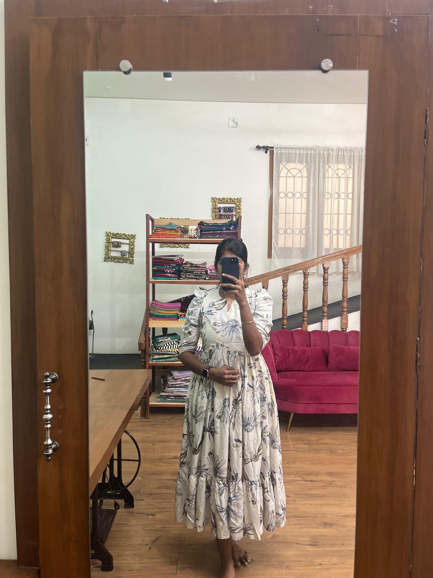 Step into effortless elegance with this floral cotton midi dress for women. Designed with puff sleeves and a flared silhouette, it’s perfect for brunches, day outings, or casual gatherings. Soft, breathable, and beautifully feminine your go-to everyday chic look!