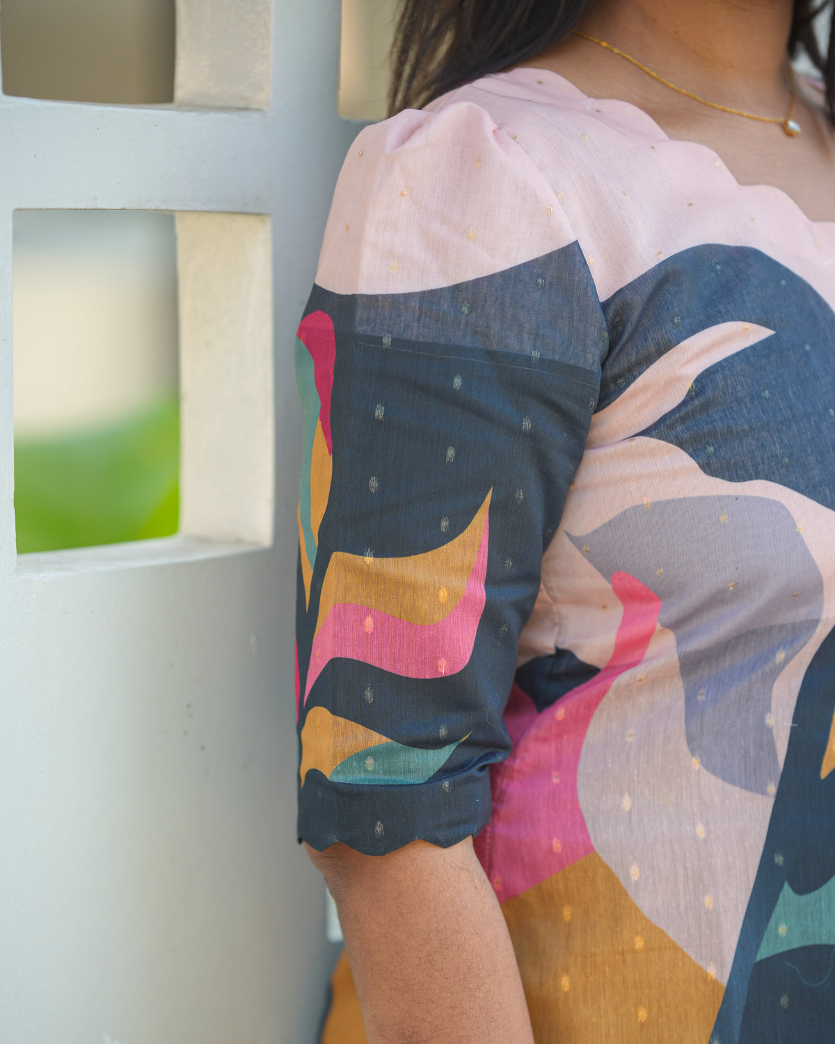 Stylish black kurti with multicolor leaf print and matching dupatta. Lightweight, elegant set perfect for festive, office, and casual wear.