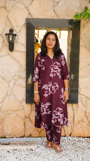 Add a touch of sophistication to your wardrobe with this maroon floral print kurta set for women. Featuring a graceful design and soft, breathable fabric, it’s perfect for daily wear, office outings, and festive occasions. Stay stylish and comfortable with this beautifully crafted ethnic ensemble.
