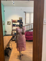 Step out in style with this elegant pink dress featuring subtle golden polka dots and puff sleeves. Perfect for casual outings, festive gatherings, or office wear, this lightweight and breathable outfit blends traditional charm with modern comfort. Available in all sizes.
